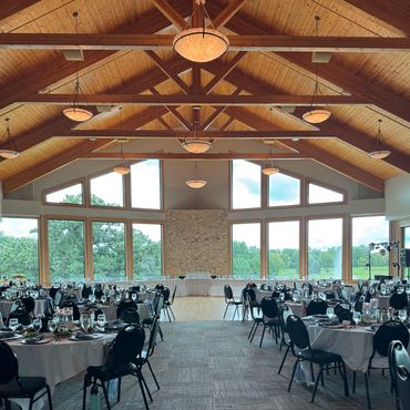 There is no better place to host your wedding and ceremony at our beautiful golf course and event center. Our exquisite facility has a spacious feel. With two full-service bars, a 2000 sq. ft. hardwood dance floor, and state-of-the-art in-house lighting, we ensure your event has that extra touch of something special.